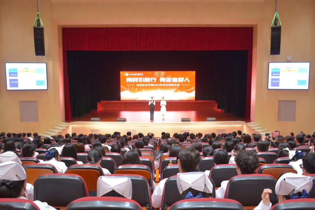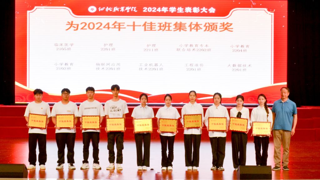 学工处负责人宣读表彰文件。大会对全院“十佳”班集体、优秀毕业生、优秀班长、十佳心理委员、优秀学生社团、优秀社干、文明班级、文明大学生、文明寝室及“反诈防骗”优秀短视频创作者等先进集体和个人进行了表彰。