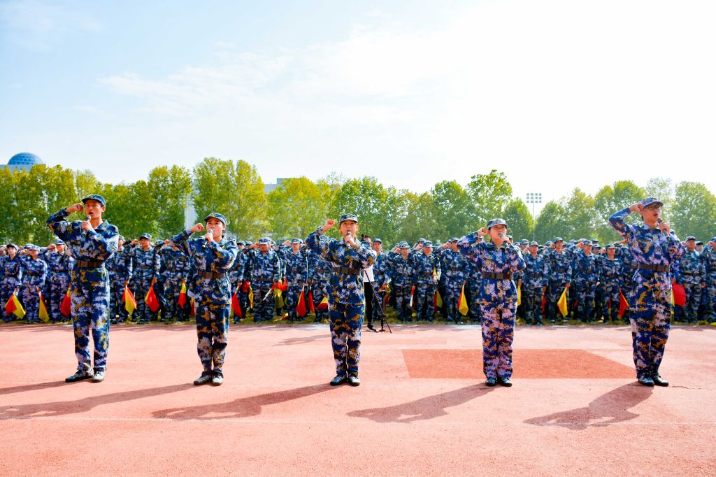 “我宣誓,我将秉承立德正身、笃学尚能校训,传承优良学风,锤炼高尚品格,勤奋严谨,知行合一,做有理想、敢担当、能吃苦、肯奋斗的新时代好青年,为实现中华民族伟大复兴的中国梦而努力奋斗。请党放心、强国有我。”在全体新生铿锵有力的誓言中,2024年学生军训会操暨开学典礼圆满结束。