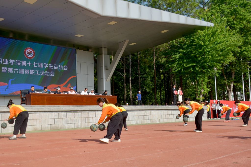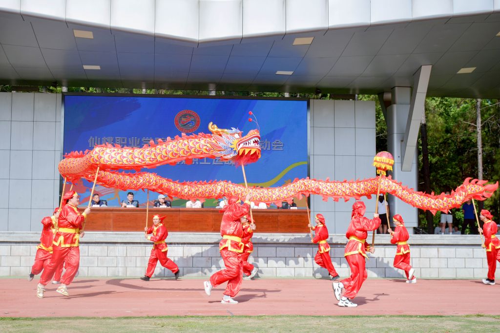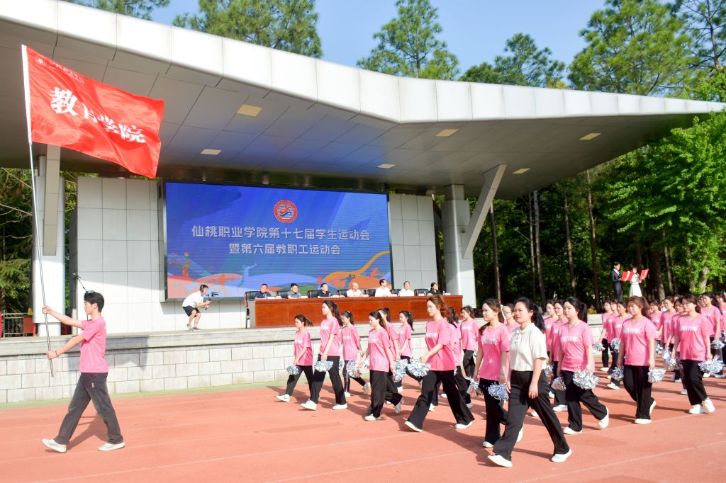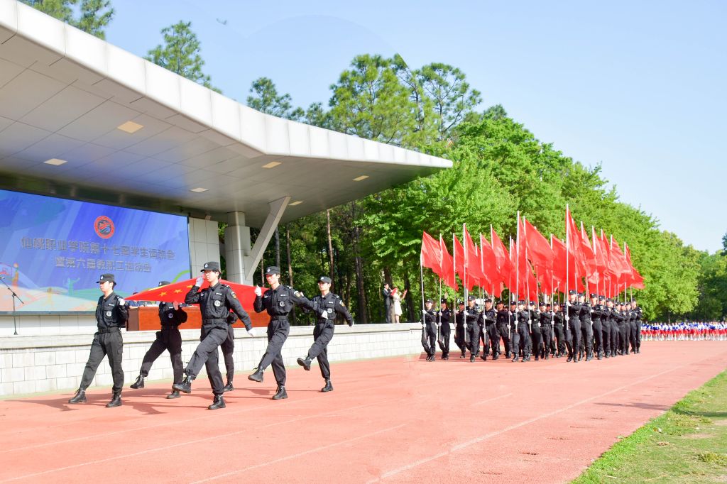 开幕式上,伴随着激昂的《运动员进行曲》,国旗方队、校旗方队、红旗方队、啦啦操方队、裁判员方队及各代表队依次入场。各方队步伐整齐、精神饱满,彰显着仙职师生昂扬向上的精神风貌。