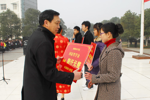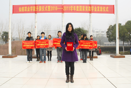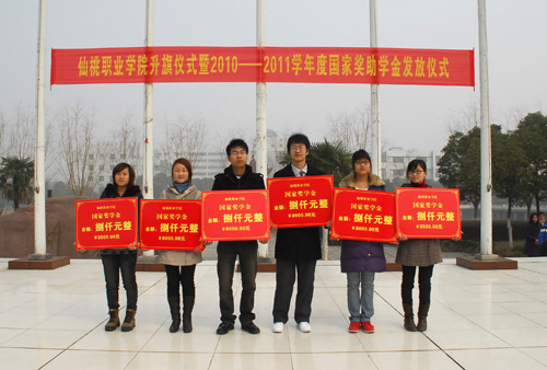 3月7日,全院师生在国旗广场集会,隆重举行升旗仪式。党委书记袁全汉、党委副书记李立勇等学院领导出席升旗仪式。仪式上,学院领导为获得2010-2011学年国家奖学金、国家励志奖学金、国家助学金和省政府奖学金的同学颁发了奖助学金,为勇救山火挽救集体财产的郑梦思同学颁发了“优秀共青团员”荣誉证书及奖金。