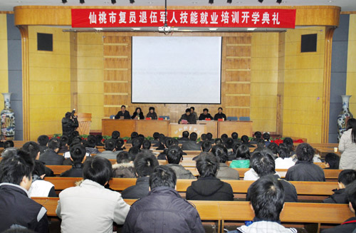 1月8日,仙桃市复员退伍军人技能就业培训开学典礼在我院学术交流中心举行,163名退伍军人进入我院复员退伍军人培训基地,通过一至二个月的专门培训,掌握一定技能,实现就业。