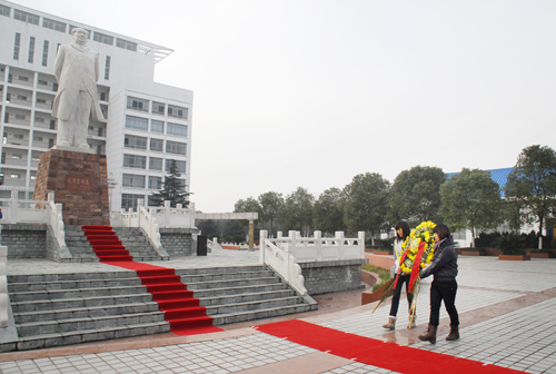 上午9点,大家来到毛泽东同志塑像前,听着红色歌曲,面朝塑像肃然而立。以学院毛泽东青年学习会成员为代表集体向毛泽东同志敬献花篮,大家怀着崇敬的心情向毛泽东像深鞠三躬,随后,学院领导、学生纷纷讲话、发言,共同缅怀毛泽东同志的丰功伟绩。