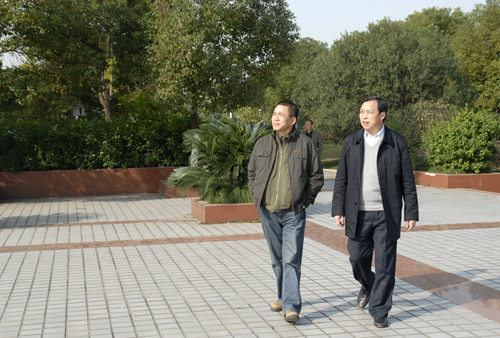 党委书记袁全汉陪同李志江(左)在校园考察
