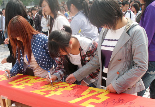 学工处组织“弘扬民族精神 树立远大理想”倡议签名活动