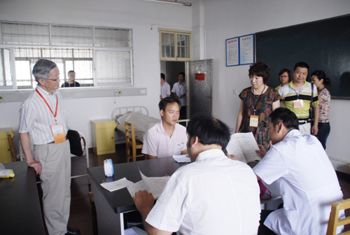 7月3日,国家医学考试中心专家组在省卫生厅副厅长张俊超陪同下,检查在我院举行的全国执业医师技能资格考试工作,并考察考试基地建设情况。