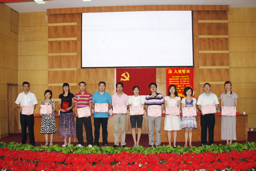 6月25日,我院举行纪念建党89周年暨师德报告会,118名新党员在党旗下庄严宣誓,医学院等4个先进基层党组织、向宇等24名优秀共产党员、吕刚等8名优秀党务工作者受到表彰,陈远发等8名师德标兵候选人作了事迹报告,表达了用高尚师德诠释献身党的教育事业的信念。