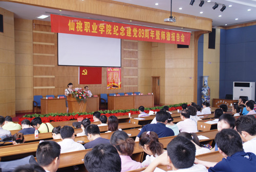 我院举行纪念建党89周年暨师德报告会