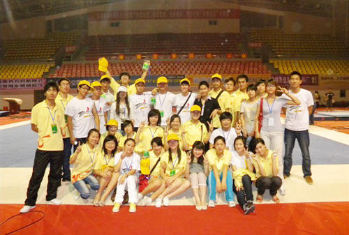 5月30日晚,为期一周的“空间传媒杯”全国体操冠军赛在我市体育馆完美落幕。比赛期间,秩序井然有序的赛场内,活跃着一个个头戴小黄帽、身穿黄T恤的身影,他们有的收拾场地,有的维持场内秩序,有的安装电脑……忙碌而有序,他们是为这次比赛服务的志愿者,是来自我院志愿者协会的学生们,也是这场比赛的唯一一支志愿者队伍。