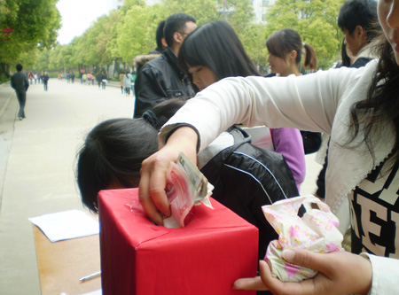 去年入秋以来,我国西南地区遭遇特大旱灾,严重影响当地群众的生产生活。西南旱情也紧牵着我院师生的心。4月7日下午,学院团委举办“情系灾区,爱心捐助”活动,为西南五省干旱灾区募捐。捐助活动得到了各院系广大师生的响应,共募集善款12000元。