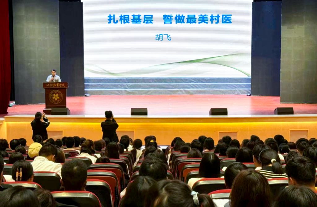 报告会上,胡飞以“扎根基层,誓做最美村医”为题,讲述了自己的心路历程。胡飞所在的小河村由3个村合并,地广人多,加上他一共只有2位村医,人手少,工作压力不小。一年365天,除了去镇里或县里学习、开会,胡飞从未离开过村里,骑摩托车穿行于崎岖的山路,为村民巡诊、看病送药是他的日常,晚上出诊也不鲜见。在高频次的行医中,胡飞的业务能力得到了精进,也受到了村民的一致赞誉。胡飞表示,村民的信任和需要给了自己成就感,治病救人体现了自己的人生价值。只要大家需要,自己就会继续做下去,当好乡亲健康的守护者。