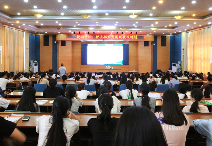 5月16日下午,医学院在学术交流中心举办镜湖讲坛,邀请武汉市中心医院急诊科护士长蒋伟为护理专业学生作职业发展规划专题讲座。