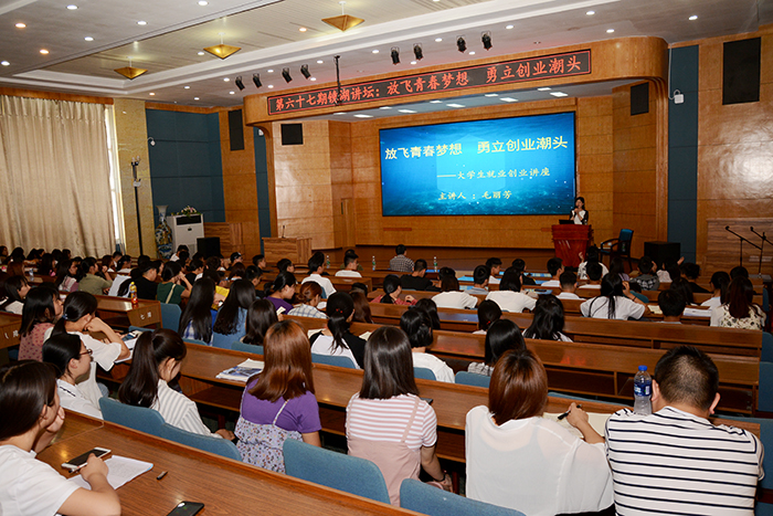 讲座中,毛丽芳分析了当前大学生就业创业形势,结合大学生就业创业案例,宣讲了国家和省扶持大学生创业的政策,介绍了大学生就业创业必备的基本技能和素质,并对如何创业提出了自己的建议。