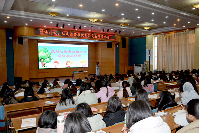 1月9日下午,教育学院在学术交流中心举办镜湖讲坛,邀请南京康轩文教集团教研中心主任余红梅为2016级、2017级学前教育专业学生作专题讲座。
