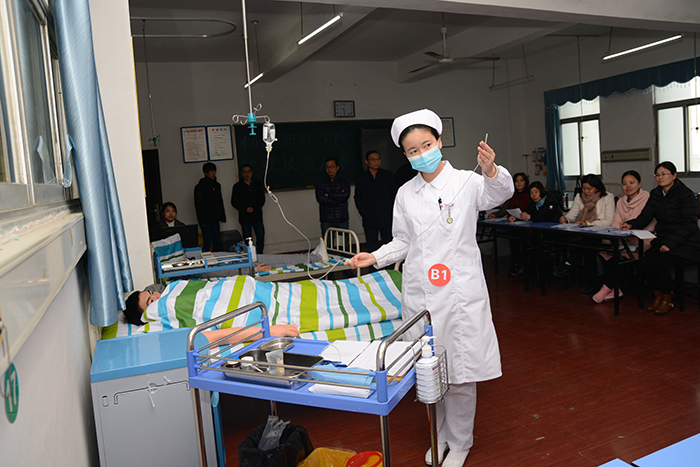 12月18日,医学院举行护理操作技能大赛,展示护理专业学生技能水平,浓郁专业技能学习氛围。院长李立勇,党委副书记、纪委书记涂旭东,党委委员、医学院院长王权海观摩比赛。