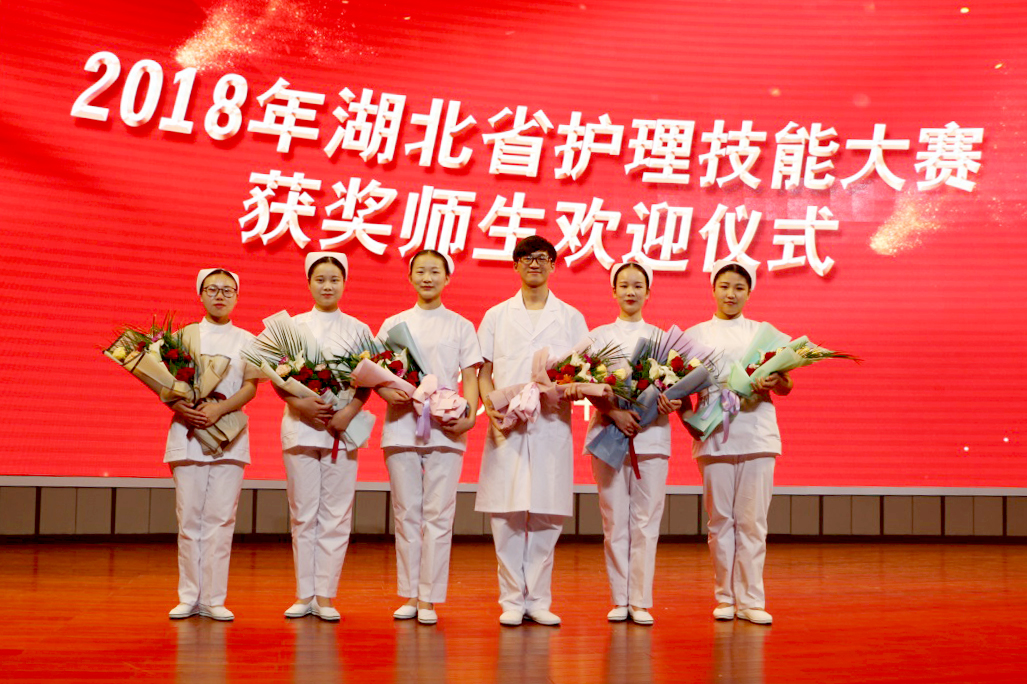 11月1日下午,医学院在多功能厅举行仪式,欢迎2018年湖北省职业院校技能大赛护理技能赛项获奖师生凯旋。