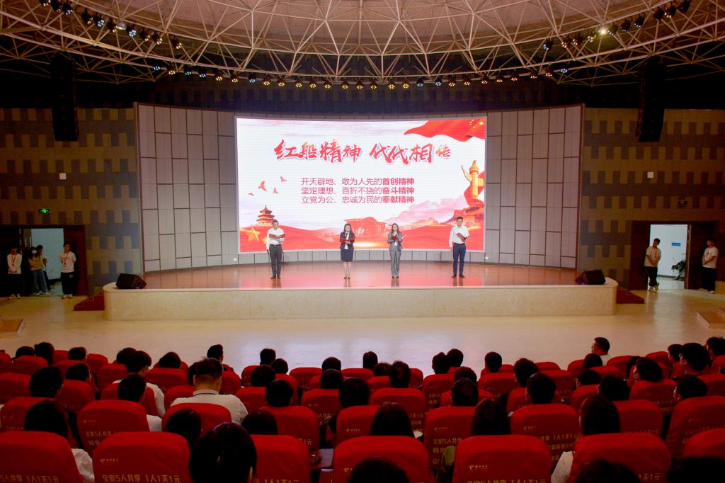 “南湖的红船扬起风帆,播撒梦想结出硕果,幸福着辉煌与灿烂。红船的精神我们继承发展,为民谋幸福,初心永不变,砥砺奋进的中国人,从此昂首在世界之巅……”在计科院4位老师的诗朗诵《红船精神 代代相传》中,一场别开生面的党史故事会拉开了序幕。党史故事会由计科院师生共同完成,师生们或深情朗诵,或通过情景表演,铭记历史,缅怀先烈,展现爱党爱国爱社会主义的深厚情怀。