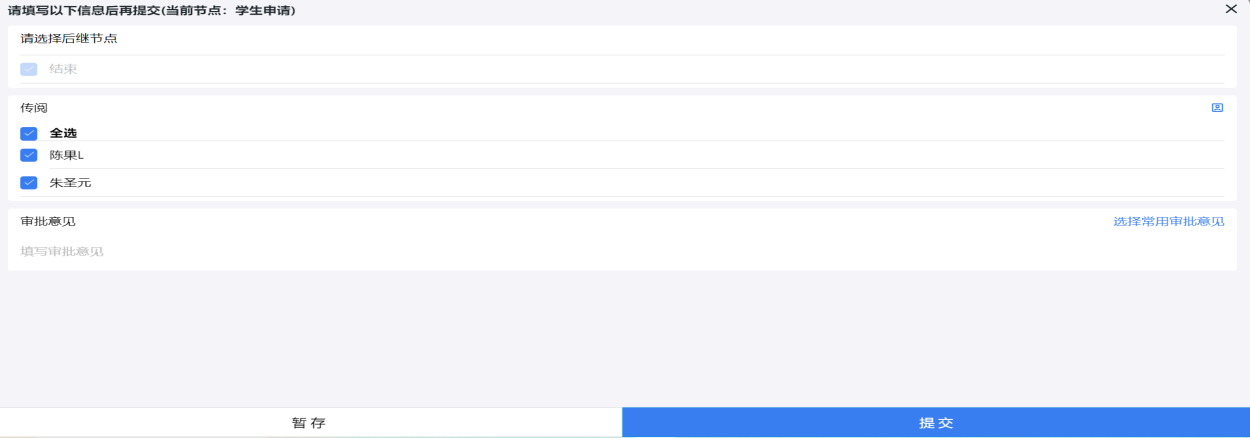 5. 提交后选择传阅,选择工号为80948、80433两位老师,点击提交即可