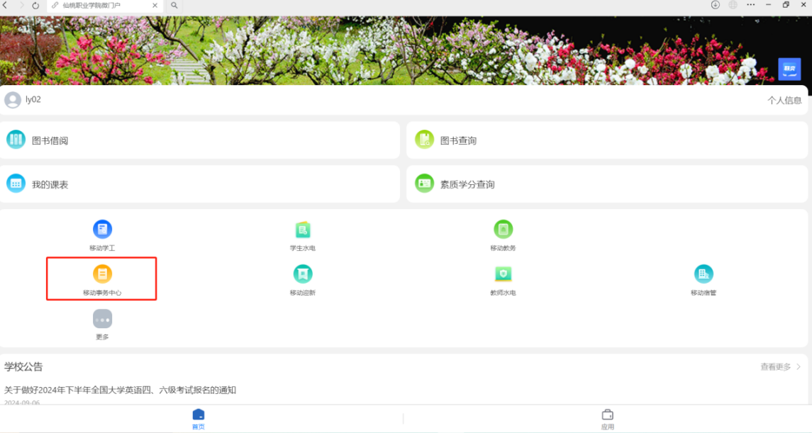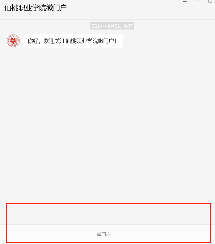1. 通过微信搜索仙桃职业学院微门户公众号,关注公众号,点击微门户