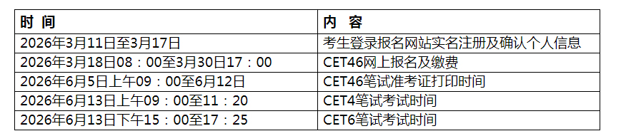 按照湖北省教育考试院要求,我院将于2026年6月13日组织全国大学英语四、六级考试,统一使用教育部考试院的网上报名系统进行报名、缴费及自助打印准考证。现将我院参加全国大学英语四、六级考试(以下简称CET46)的报名具体事项通知如下: