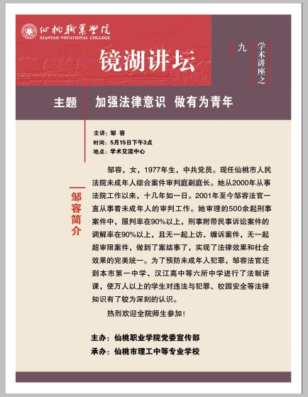 中共仙桃职业学院委员会宣传部版权所有地址:湖北省仙桃市纺织大道8号邮编:433000 电话:0728(院办 3331999 招办 3331818 3331828)信访电话:0728-3331999 信访邮箱:xtzy303@126.com 鄂ICP备06000945号-1 鄂公网安备 42900402000433号