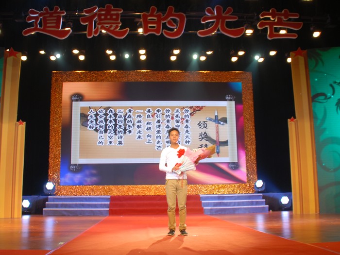 颁奖典礼上,当我院经济与管理学院园林技术专业学生詹志麒从市委常委、市委秘书长王军娥手中接过“第三届感动仙桃十大道德模范”的奖杯与证书时,全场爆发出一阵热烈的掌声。詹志麒直面困难、自强不息,勤奋好学、立志成才,感恩奉献、关爱留守儿童,服务社会,是我院近年来涌现出来的自强奉献优秀大学生的代表。“感动仙桃十大道德模范”组委会的写给詹志麒颁奖词是这样的,“你的青春是火种,点亮留守儿童的梦想,你的青春是启明星,牵引着博爱的光芒。善良、积极、向上,一路放歌走来,青春的乐章,汇成闪亮的诗篇。在未来的天空里,你会找到自己的人生坐标。”