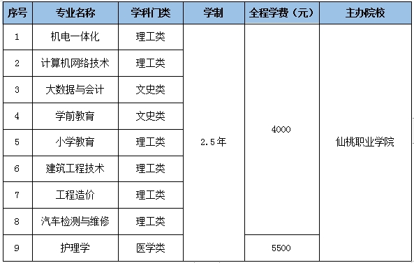仙桃职业学院与长江大学、中国地质大学(武汉)开展联合办学,举办专科起点本科(以下简称专升本)和高中起点本、专科(以下简称高起本、高起专)不同层次的成人高等教育,已形成了多学科、多层次、多规格、多形式、面向多种教育对象的办学体系,赢得了良好的社会声誉,为行业和地方经济发展培养大量实用型技术人才和管理人才。