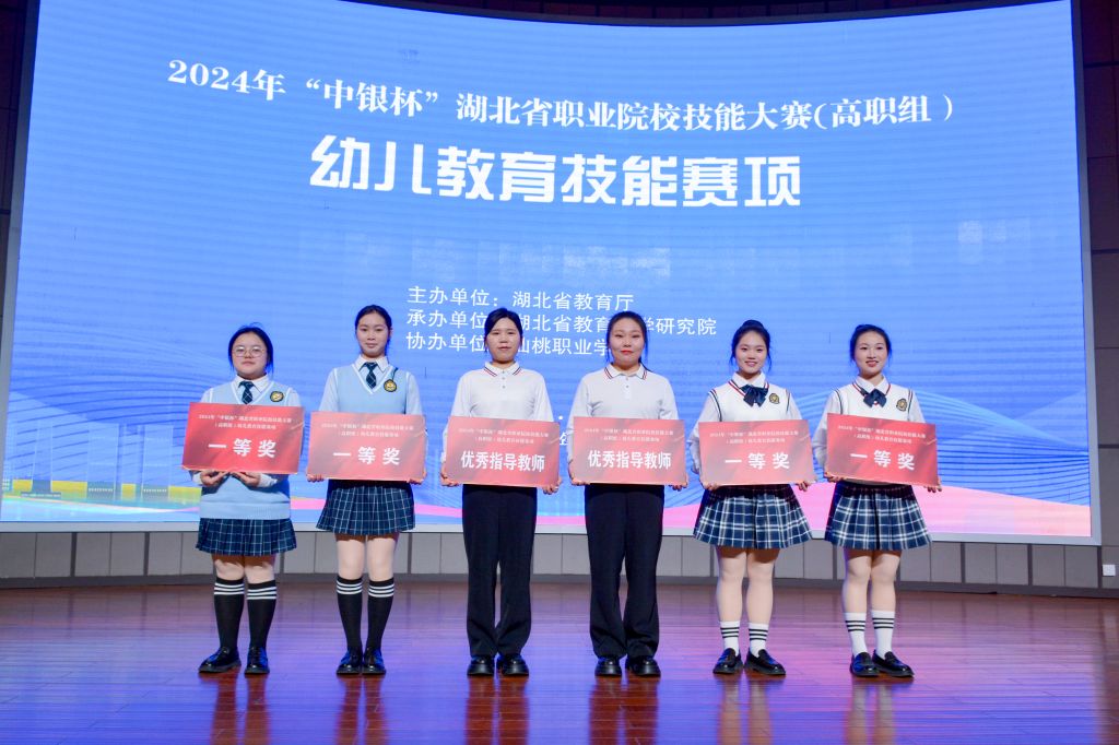3月11日上午,2024年"中银杯"湖北省职业院校技能大赛(高职组)幼儿教育技能赛项在仙桃职业学院多功能报告厅顺利闭幕。本次比赛共有来自全省28支队伍参赛,经过三天的激烈角逐,我院参赛师生喜获一等奖4个,优秀指导教师奖2个。其中教师温玲捷、肖幸分获教师组个人赛一等奖; 蔡雨晨、夏凡获学生推荐队一等奖; 马俊晴、马雪莲获学生抽测队一等奖; 温玲捷老师、肖幸老师荣获优秀指导教师奖。