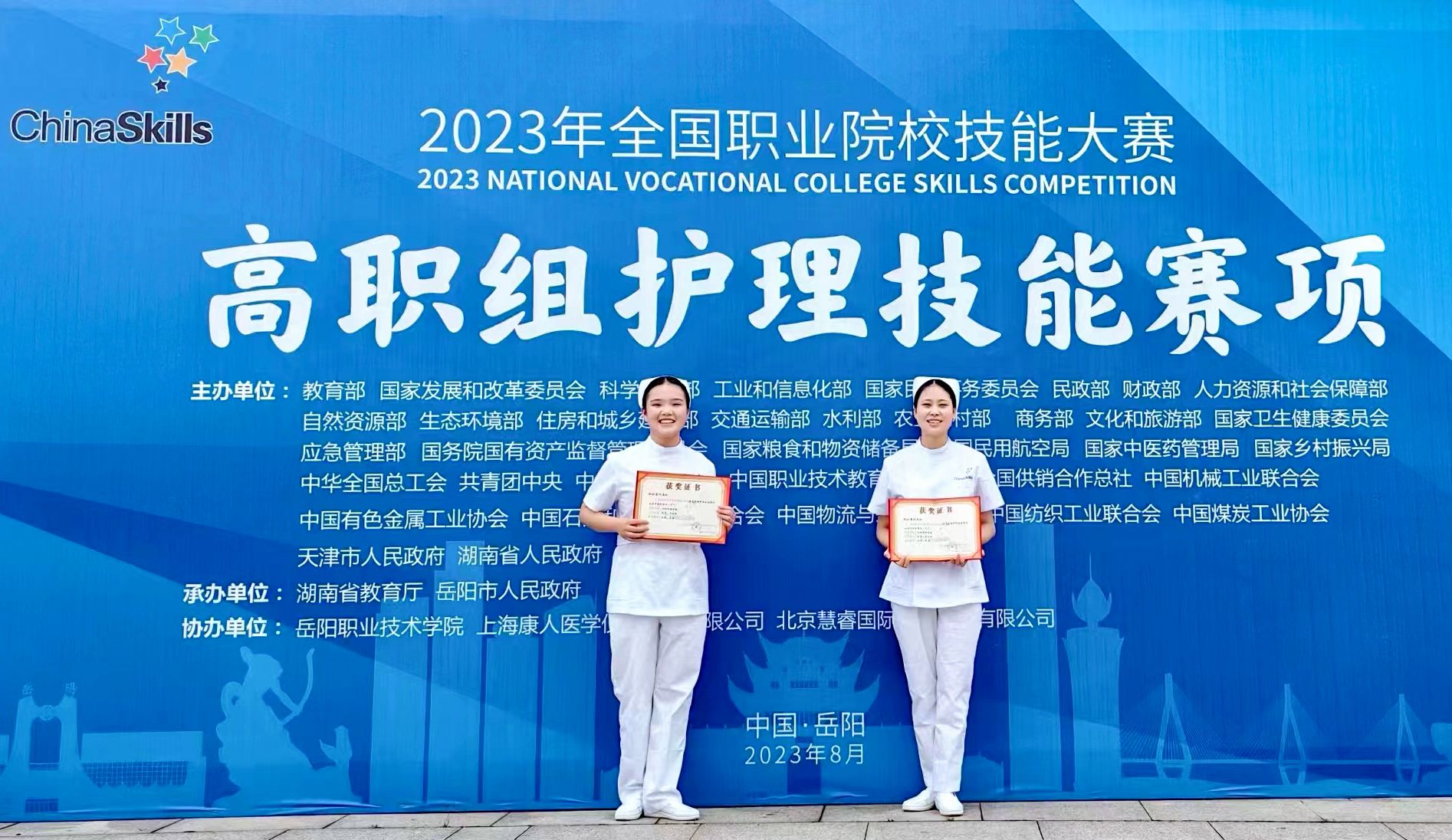 8月28日上午,2023年全国高职院校技能竞赛高职组护理技能赛项落下帷幕,医学院护理专业学生李奇、吴凤娇与来自全国63支代表队的126名选手同台竞技,以扎实的专业技能和默契的团队协作,获得该赛项三等奖,为湖北省和学校争得了荣誉。