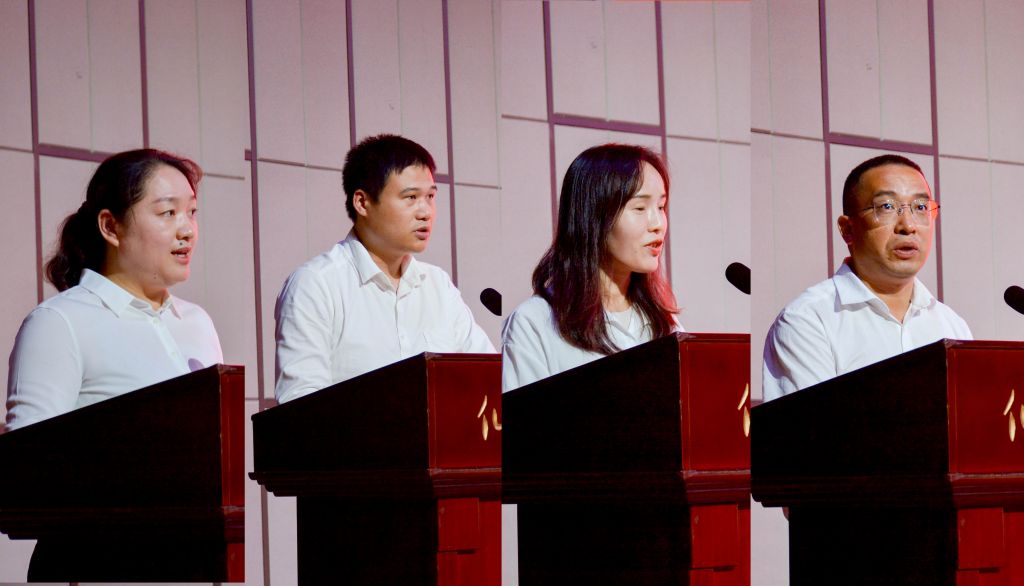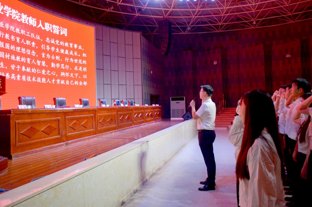 会上,机械电子工程学院、受表彰教师代表作交流发言,新进教师举行入职宣誓。