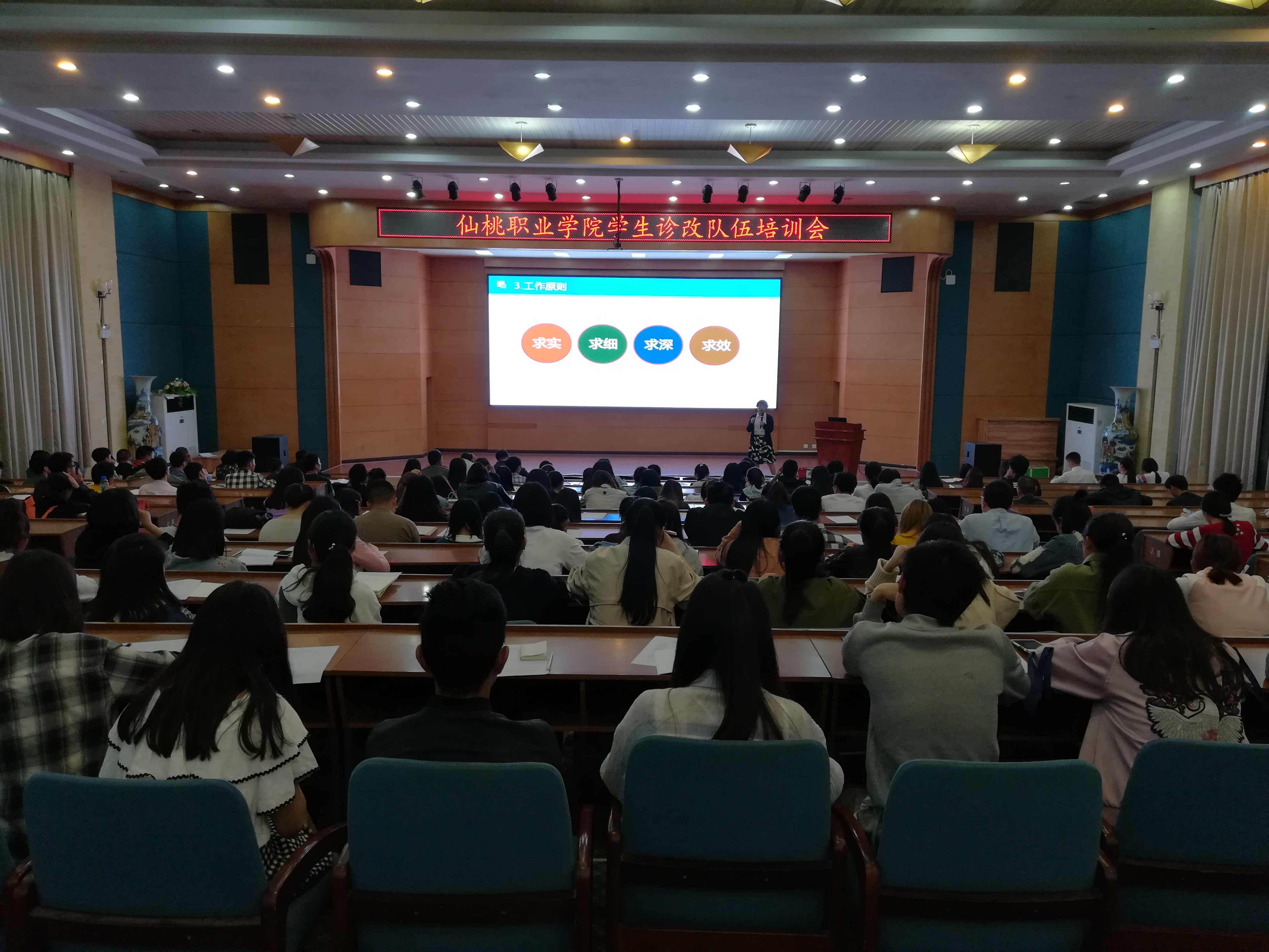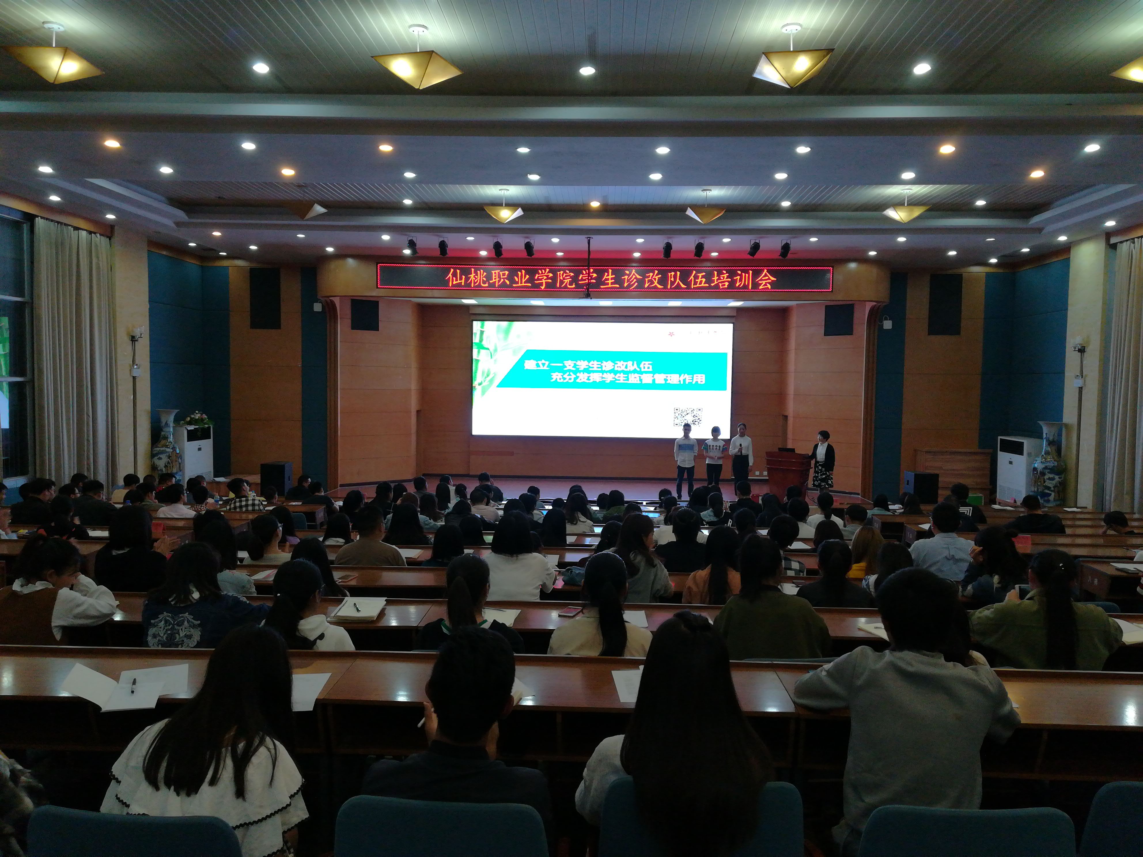 4月26日晚,诊改办在学术交流中心召开了以“建立一支学生诊改队伍,充分发挥学生监督管理作用”为主题的学生诊改队伍培训会。诊改办人员、各二级学院诊改责任人、各教研室主任及2016、2017级200余名学生信息员参加了本次会议。